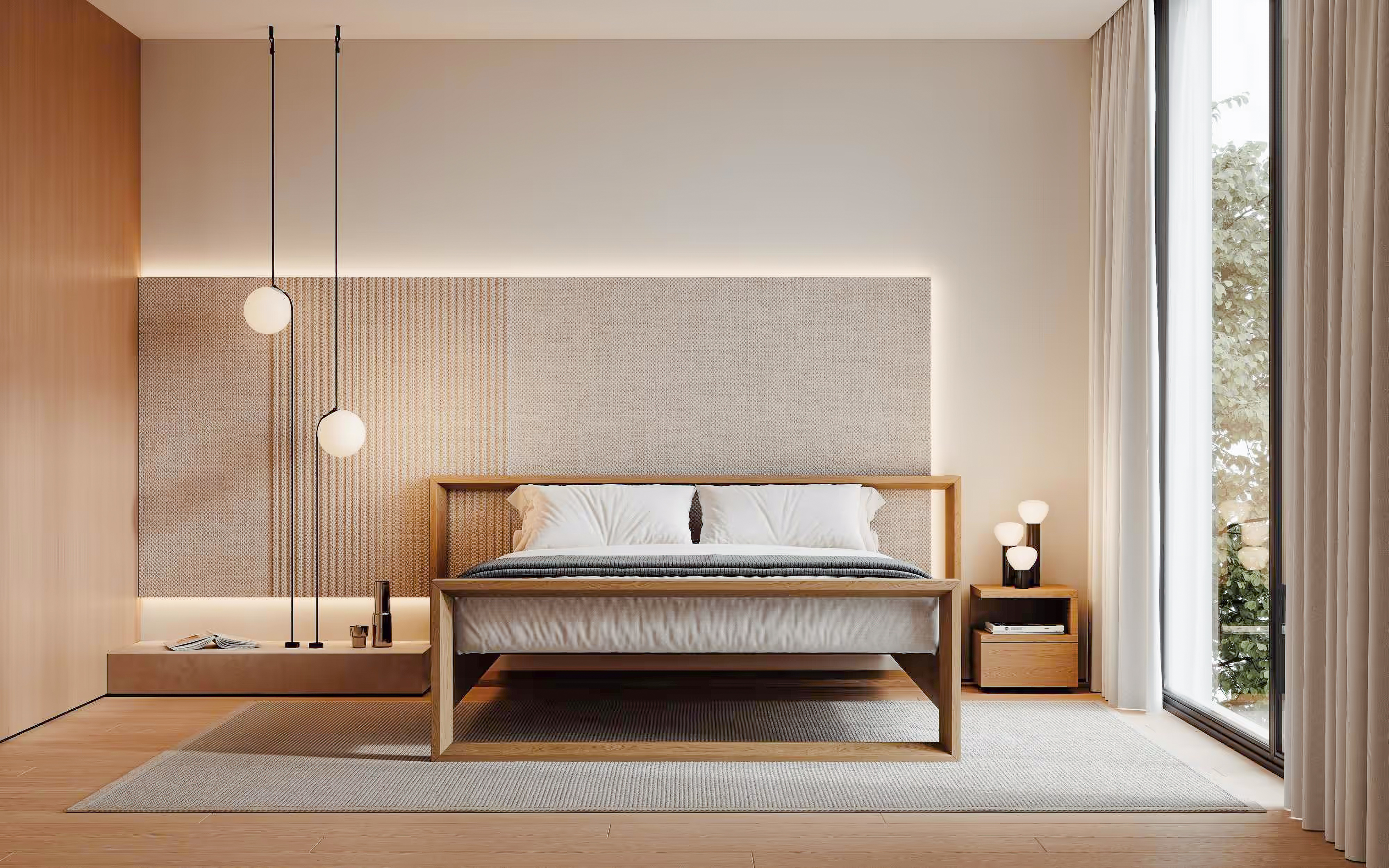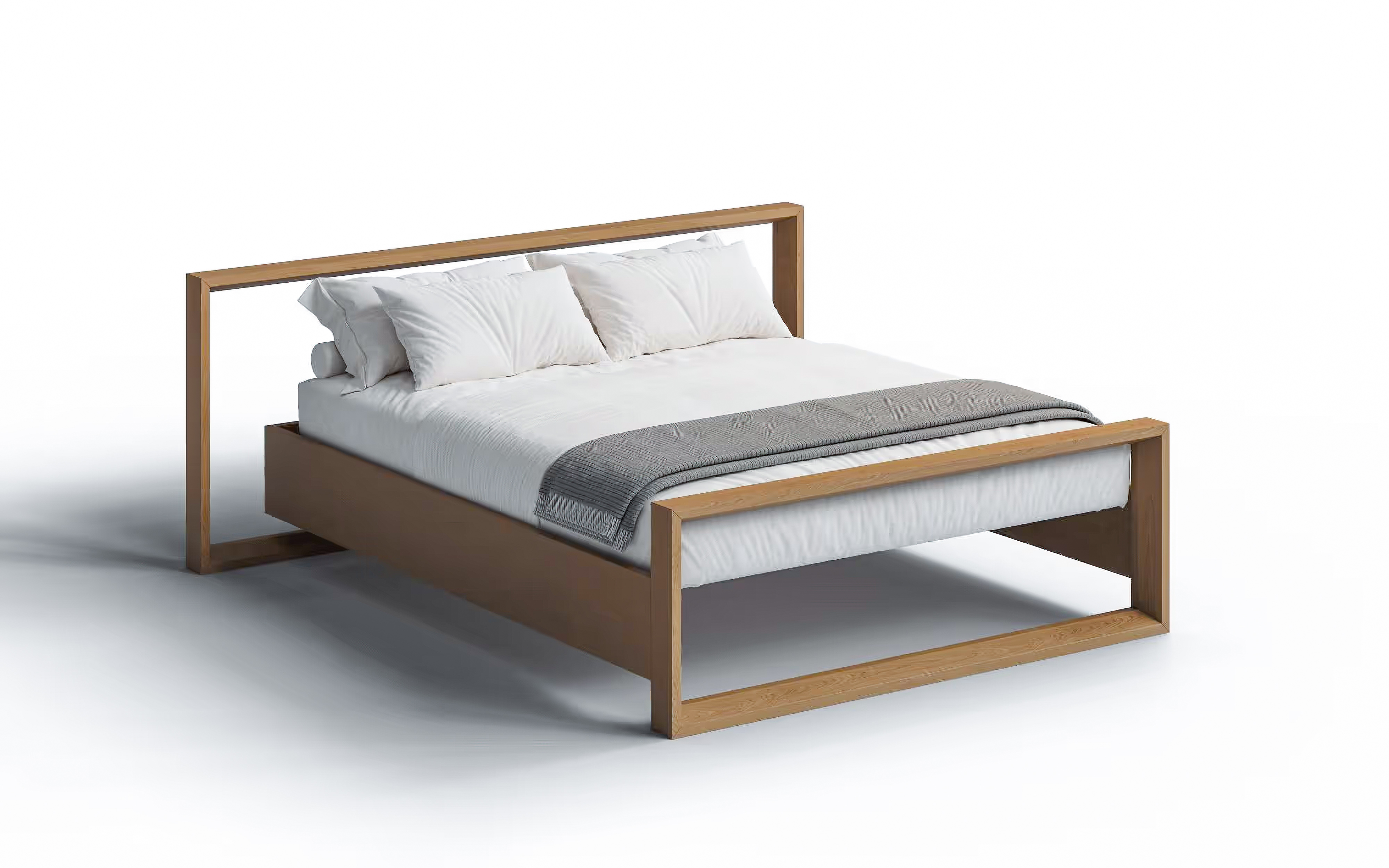 Das Bett QUADRO ist ein markantes Designstück mit breitem, strukturiertem Massivholz-Kopfteil. Die charakteristische Form macht es zum absoluten Blickfang in jedem Schlafzimmer. Natürliches Holz mit sichtbaren Jahresringen, ökologisch behandelt – glatt und angenehm zu berühren. Erhältlich in fünf Holzarten.